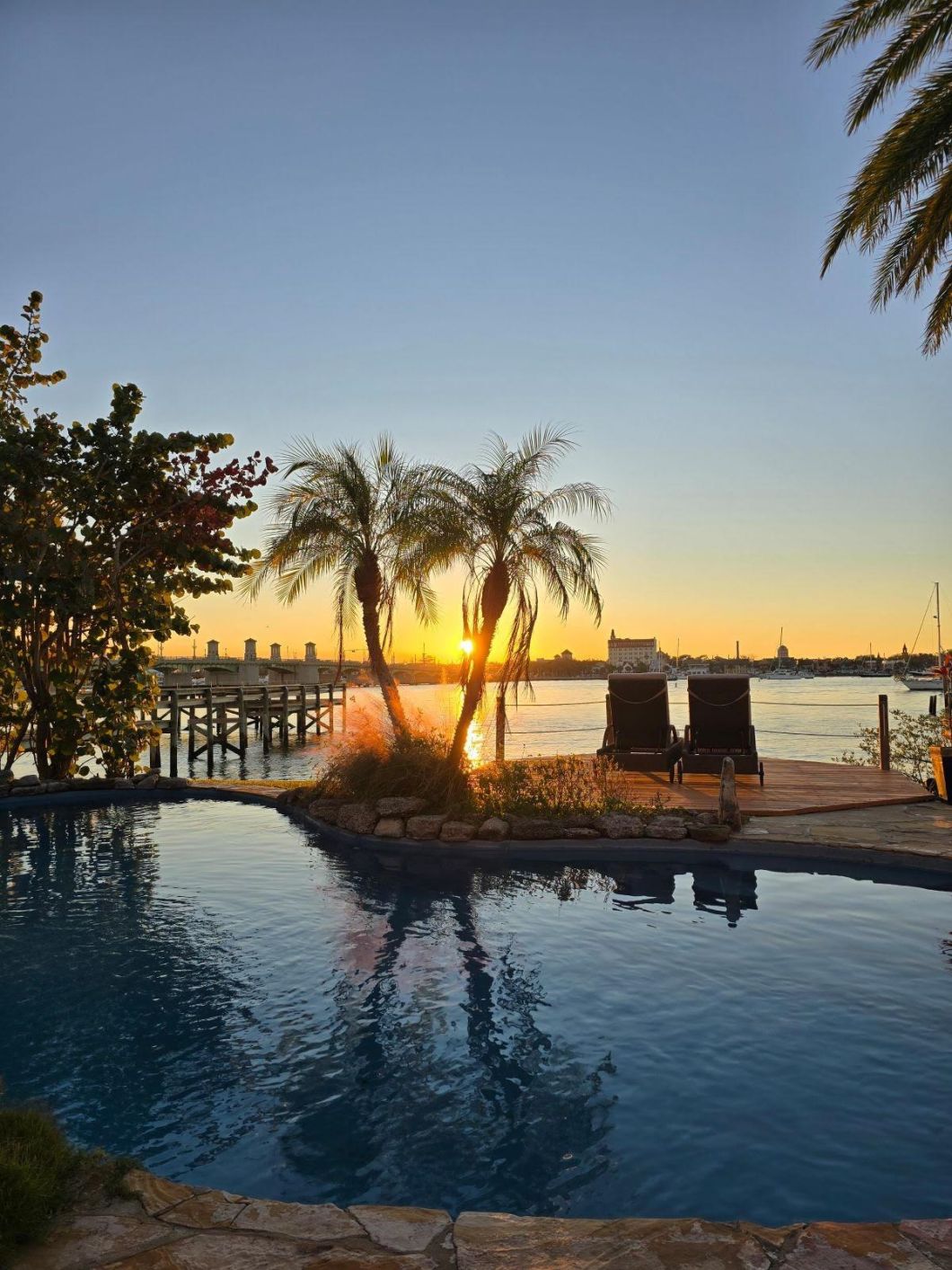 PRICED AT THE CURRENT APPRAISED VALUE! Discover the extraordinary outdoor living experience awaiting you in the backyard of this remarkable home. Revel in stunning views of historic downtown St. Augustine, featuring the iconic Bridge of Lions, Castillo de San Marcos, and Mission de Dios. Picture yourself enjoying summer fireworks on the 4th of July and the magical Night of Lights in December, all from your magnificent flagstone patio, inviting inground pool, or elegant cantilevered deck. This property is ideally situated within walking or biking distance to the vibrant downtown district, offering an abundance of restaurants, shopping, and entertainment options. Spanning 75 feet wide along the water and 150 feet deep, this generous lot provides plenty of room for relaxation and entertaining guests. The front of the home is equally enchanting, highlighted by a picturesque footbridge